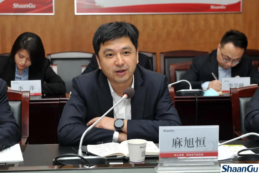 李宏安董事长以“工行陕鼓碳中和深化合作创辉煌”为题,向了麻旭恒行长一行介绍了陕鼓战略聚焦分布式能源所取得的发展成效。李宏安董事长表示,“十四五”时期,陕鼓将持续深化转型,以国家“碳达峰、碳中和”的双碳目标为契机,积极构建核心竞争力,按照“互为市场、互为资源、互为股东”的合作理念,大力拓展国内国际市场。李宏安董事长表示,陕鼓与工商银行一直以来都有着良好的合作,希望双方能够继续互为资源,创新合作,实现共赢发展。